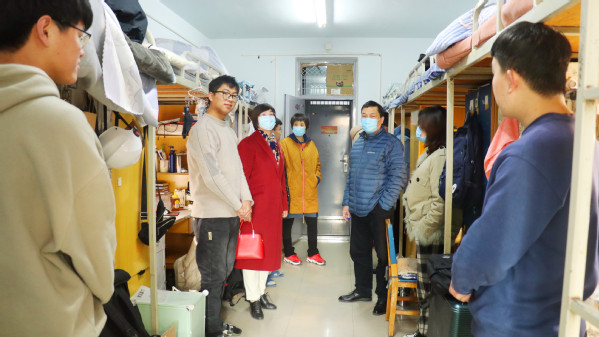 为关心了解同学们返校后的学习、生活情况,帮助他们尽快调整状态投入到新学期的学习生活中,2月20日,直播吧 院长黄守佳、党委书记郭晓丽、副书记王燕翔以及辅导员一行,深入学生宿舍关心慰问返校学生。