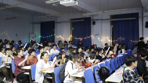 晚会在火热的开场舞中拉开帷幕,现场观众迅速融入到了欢快气氛中。情景剧《红岩》中,同学们用生动的表演展现了共产党员的坚强意志和不屈精神,现场观众热血澎湃;诗歌朗诵《祖国啊,我亲爱的祖国》用深情的语言道出对祖国深深的热爱;小品《亮剑》幽默诙谐,点燃了整场气氛,展现了同学们的青春风采和活力。晚会在一曲《这一生关于你的风景》中落下帷幕。现场有奖问答、互动小游戏,不断掀起了活动高潮,同学们积极参与、乐在其中,教室里笑声不断、掌声不断、欢乐不断!