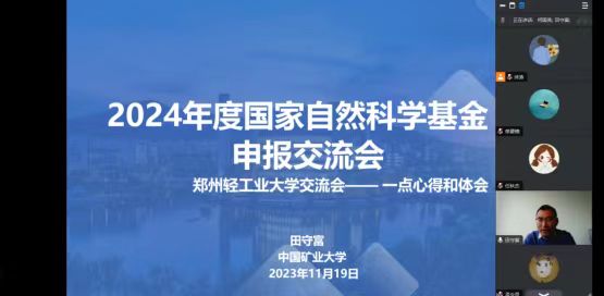 为进一步提高国家自然科学基金申报书质量,根据学校和直播吧 2024年度国家自然科学基金申报工作安排,11月19日,直播吧 邀请中国矿业大学田守富教授为我院教师做了关于2024年度国家自然科学基金申报经验交流的报告,所有博士参加了本次报告会,报告会由何国亮副院长主持。