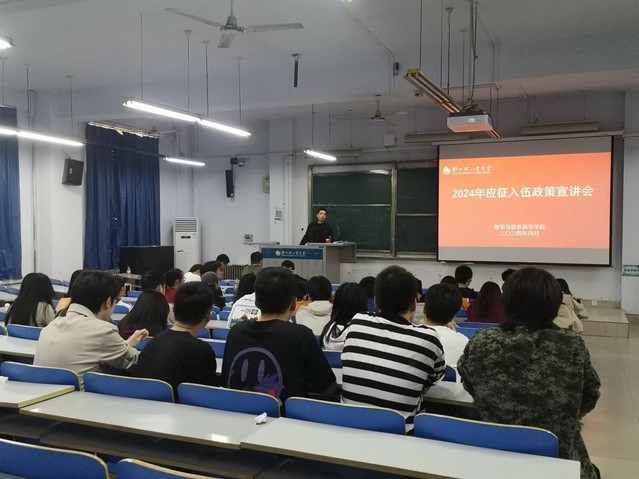为深入学习贯彻习近平强军思想,推进新时代强军事业,鼓励和引导大学生积极应征入伍,激发学生报效祖国,献身国防的热情,4月11日下午,直播吧 在东一楼218举办应征入伍政策宣讲会。会议邀请学校武装部黄鹞老师进行宣讲,直播吧 2024届未确定去向的毕业生参加会议。会议由直播吧 征兵联络员、就业辅导员周四晴主持。