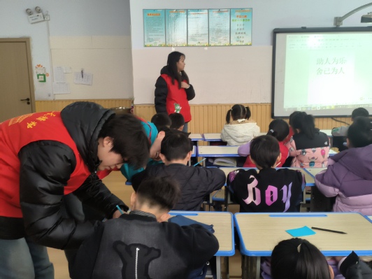 活动中,志愿者们在教室为小朋友讲解“雷锋的故事”,帮助孩子们理解雷锋精神,引导他们从身边的小事做起,做到不随地扔果皮纸屑、不吐痰,生活中多劳动、帮助老人,让孩子们从小形成关爱他人、帮助他人的意识。志愿者们耐心倾听孩子们的话语,与他们交流互动,陪伴小朋友们上课并辅助他们吃点心。随后志愿者们带领孩子们一同进行了角色扮演、手工折纸、拼积木等一系列丰富多彩的游戏活动。活动结束后为小朋友们发放了可爱的小礼物,鼓励大家积极参加助人活动。