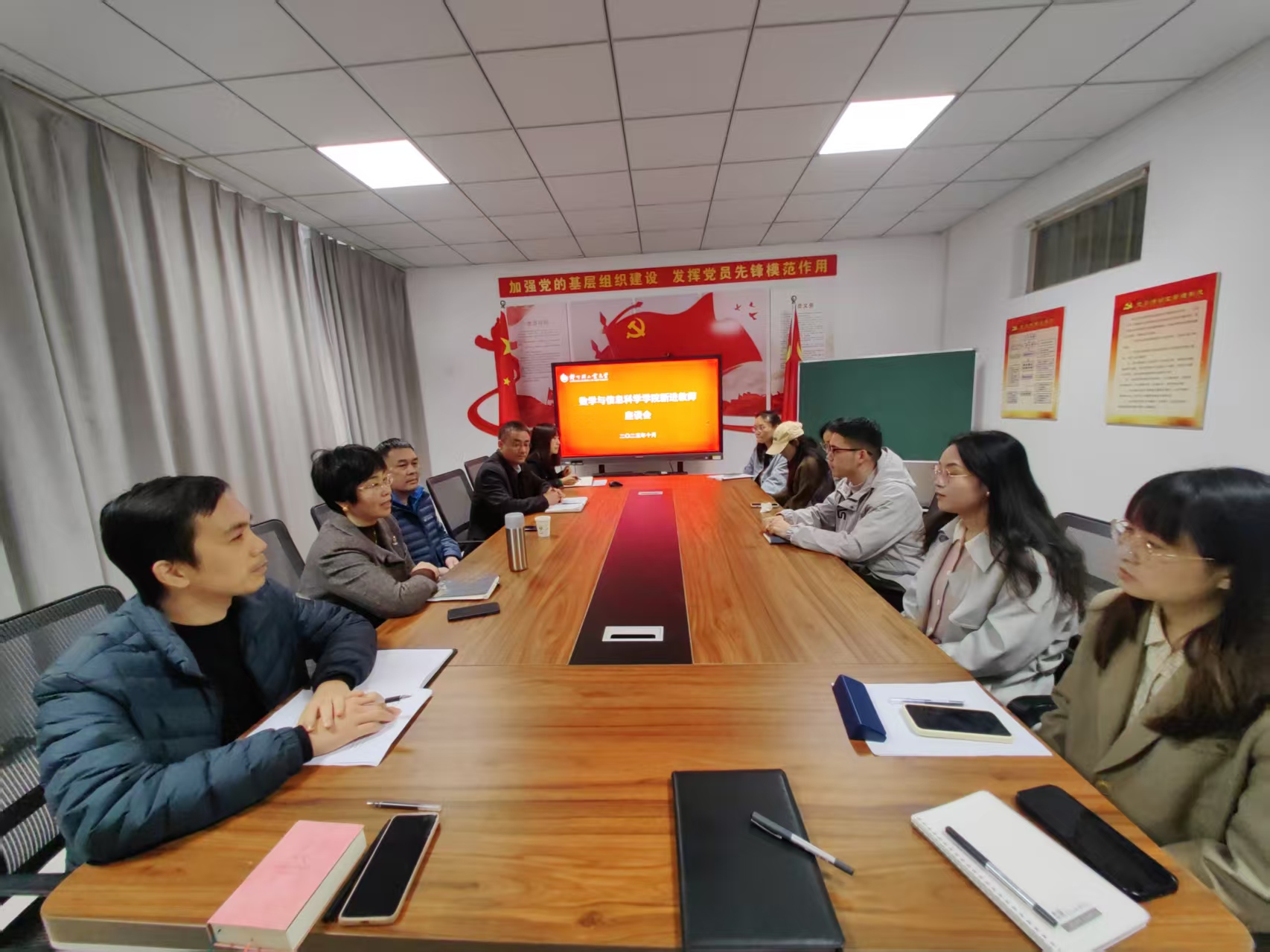 10月29日下午,直播吧 在东一楼205会议室召开新进教师座谈会,直播吧 领导班子成员和近三年新进教师参加了会议。会议由郭晓丽书记主持,并特邀直播吧 关心下一代委员会常务副主任黄守佳参加。
