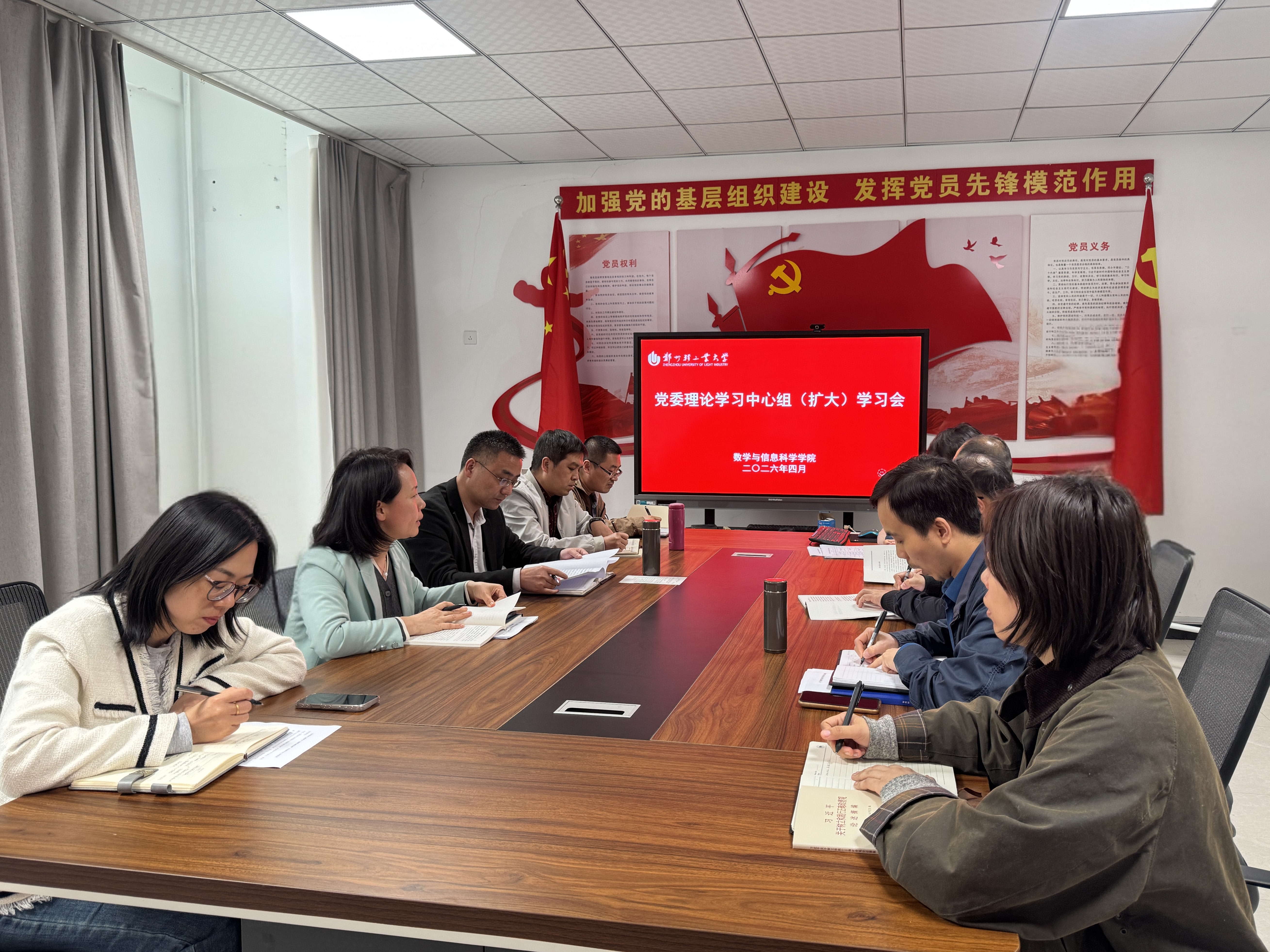 4月22日下午,直播吧 在东一楼205会议室召开党委理论学习中心组(扩大)学习会。直播吧 领导班子成员、各党支部书记参会,直播吧 党委书记孔祥娟主持会议。